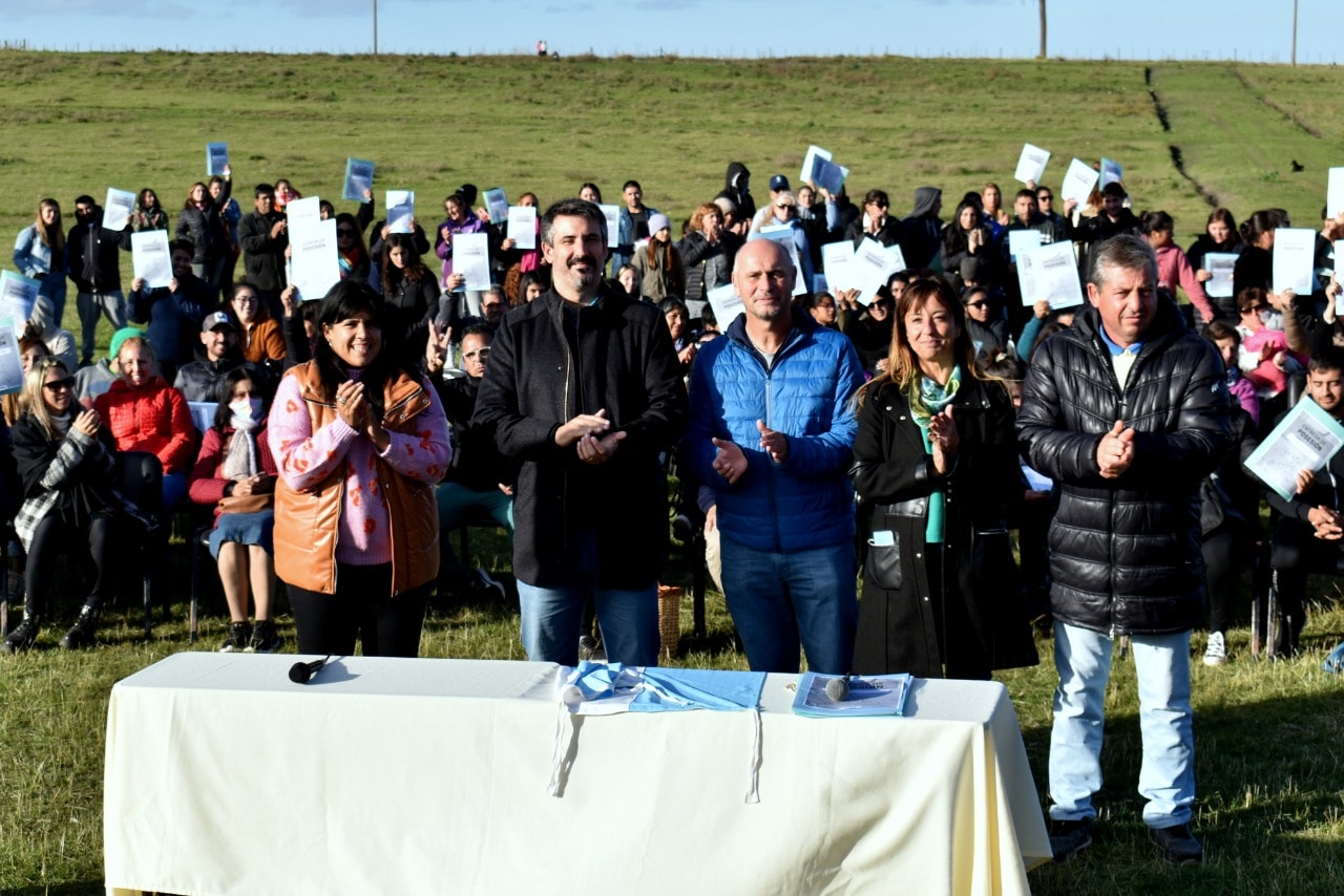 Luego de una larga gestión iniciada años atrás por el ex-intendente Germán Di Césare, y continuada por el Intendente Municipal Sebastián Ianantuony, se logró completar todos los pasos y procesos exigidos por la ley, que culminaron en esta solución concreta y real a más de 115 familias de esta comunidad, que hoy tienen la tranquilidad de tener su casa, su hogar.
