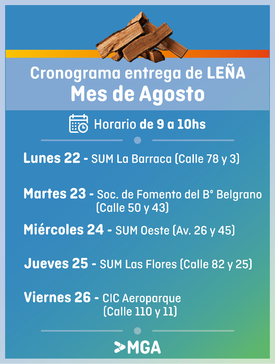 Entrega de Leña: Cronograma del lunes 22 al viernes 26 de Agosto 2022