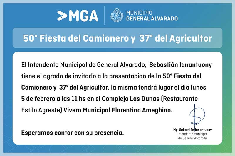 Con el apoyo del Municipio de General Alvarado, los días 08, 09, 10 y 11 de Febrero 2024 se llevará adelante en el “Pago Lindo” una nueva edición de este tradicional festejo de la familia campera.