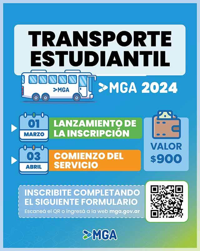Para acceder al Transporte Municipal Estudiantil, las y los interesados deben solicitar primeramente su Carnet Estudiantil, completando este formulario online: https://forms.gle/nEw2oPBzM4pSZFVN7 , o ingresando a la web oficial: https://mga.gov.ar/transporte-municipal-para-estudiantes/