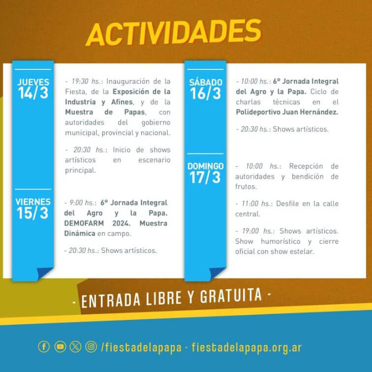 Actividades Fiesta Nacional de la Papa por noticiasdeotamendiPublicado en13 marzo, 202413 marzo, 2024