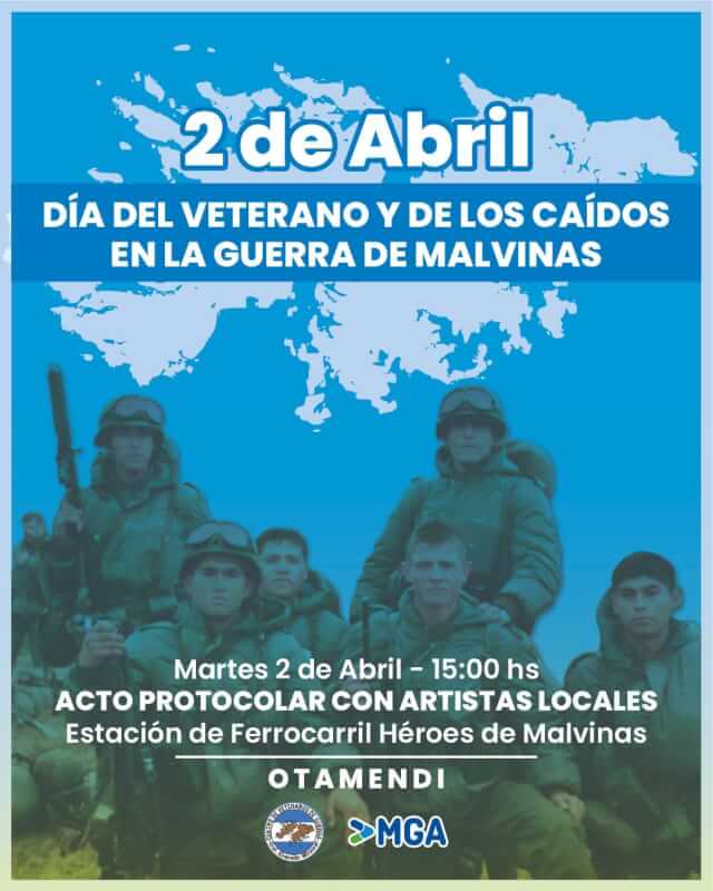 El martes 2 de abril a las 15:00 horas se realizará el acto de homenaje en conmemoración a los veteranos de la guerra de las Islas Malvinas.