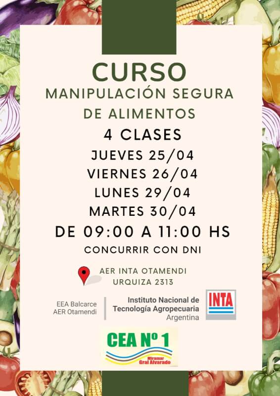 Curso de Manipulación de Alimentos en INTA Otamendi por noticiasdeotamendiPublicado en6 abril, 20248 abril, 2024 Es gratuito y comienza el 25 de abril
