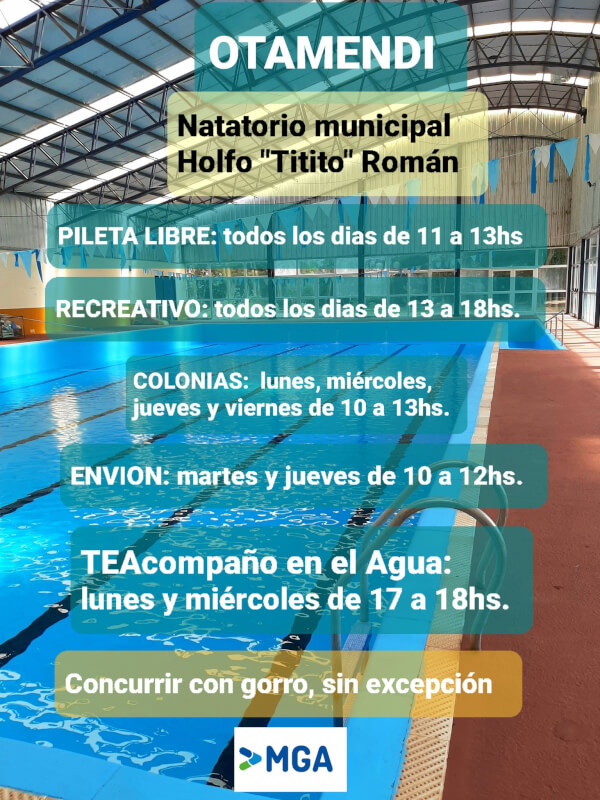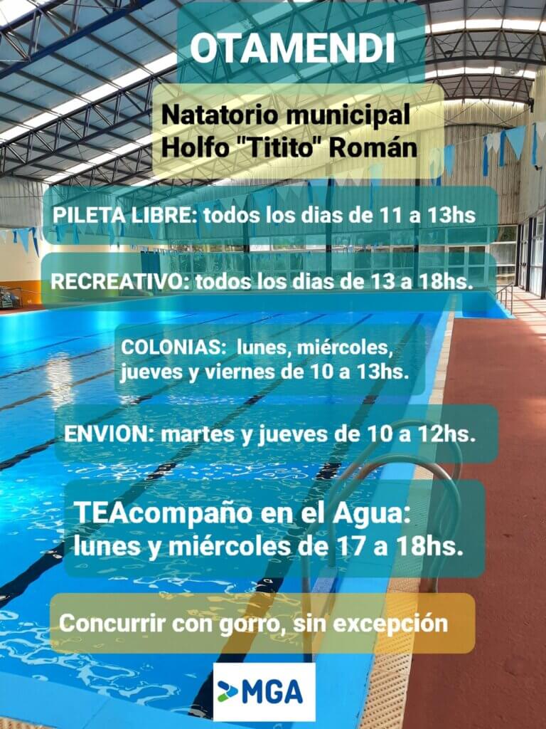 ¡Natatorio Municipal Holfo «Titito» Román! por noticiasdeotamendiPublicado en17 enero, 202519 enero, 2025 Cronograma de actividades a partir de mañana, sábado 18, a las 10 hs. ¡No te lo pierdas! Para consultas e información, acercate a la administración del predio.