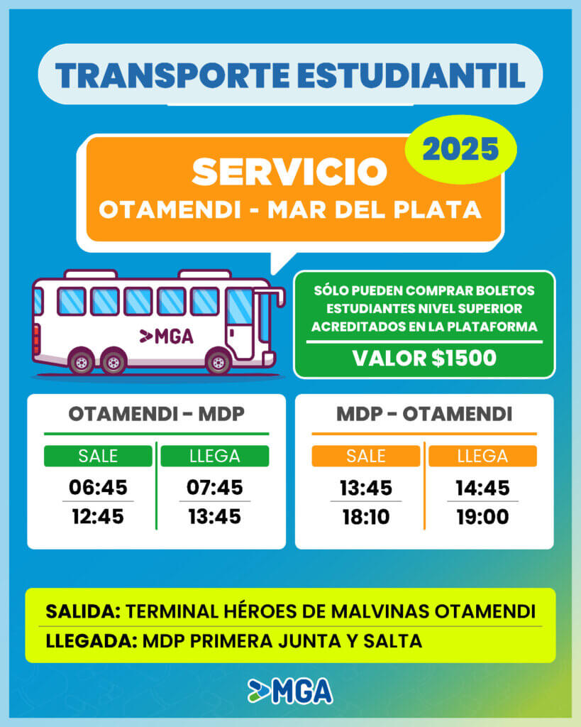 Para inscripción o más información podés entrar a la página web de la comuna y dirigirte al icono transporte estudiantil que se encuentra en: https://mga.gov.ar/