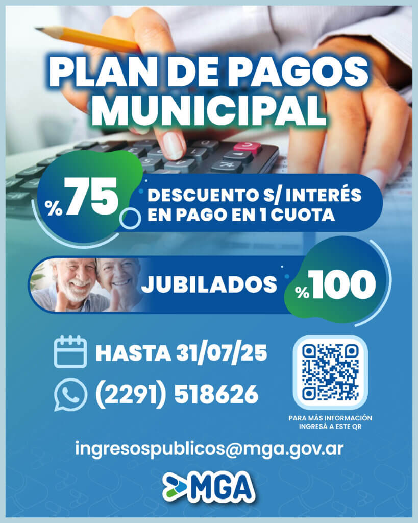 Hasta el 31 de Julio de este año estará en vigencia el Plan de Pagos 2025 para el Municipio de General Alvarado, permitiendo un alivio fiscal a los contribuyentes, al poder cancelar sus obligaciones municipales a través de importantes planes de pago con descuentos y cuotas.
