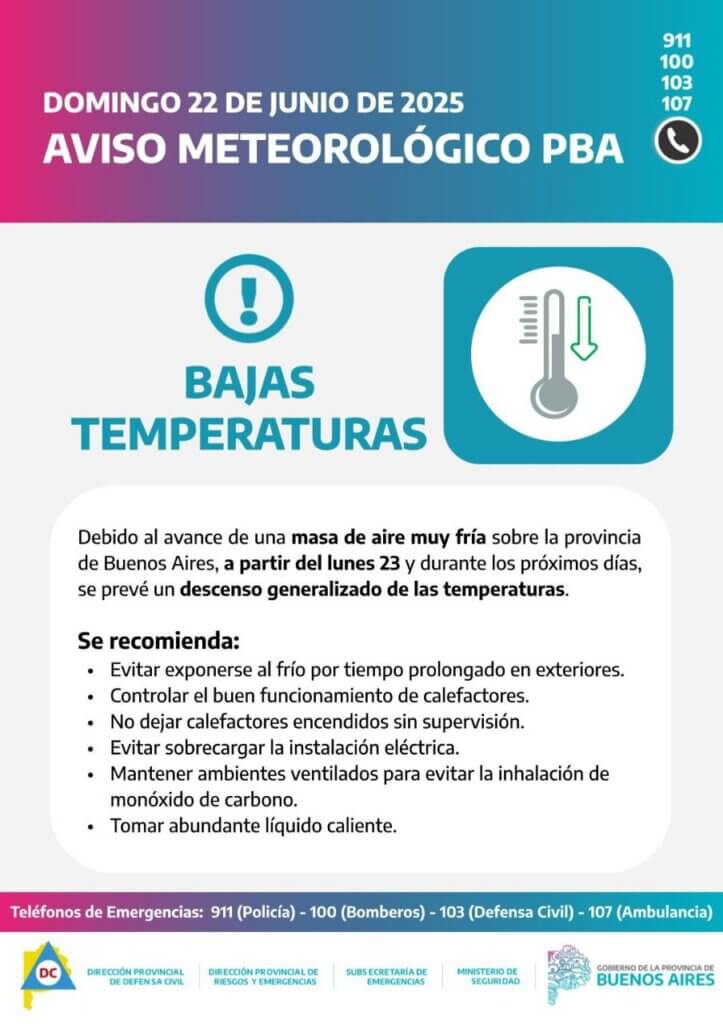 ¡Alerta por bajas temperaturas en Pcia de Buenos Aires!