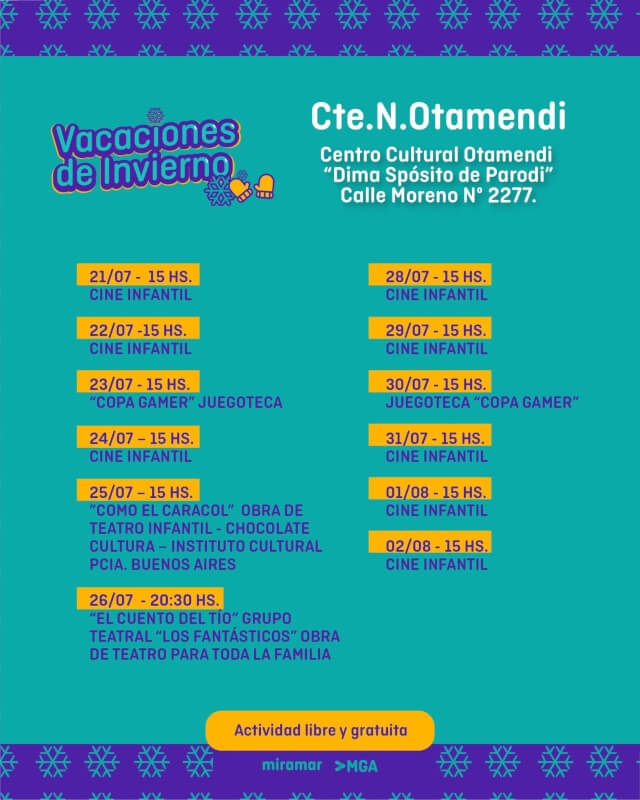 🍫🎮El Centro Cultural Otamendi “Dima Spósito de Parodi”, ubicado en calle Moreno 2277, ofrece una nutrida agenda de actividades gratuitas para disfrutar estas vacaciones de invierno.