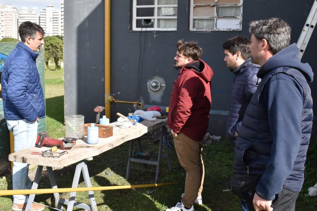 El Intendente Municipal de General Alvarado, Sebastián Ianantuony, junto al Director de Deportes MGA, Facundo Armenteros; a la encargada del Polideportivo, Nancy Morera, y del Director de Obras Públicas de la comuna, Brian Benítez, asistió al inicio de la obra de gas del Natatorio Municipal de Miramar.