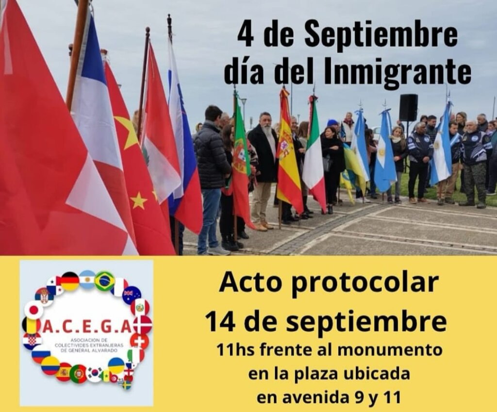 El próximo domingo 14 de Septiembre a las 11.00 hs, se llevará a cabo el acto protocolar en conmemoración del Día del Inmigrante, frente al monumento ubicado en la plaza de Av. 9 y 11.