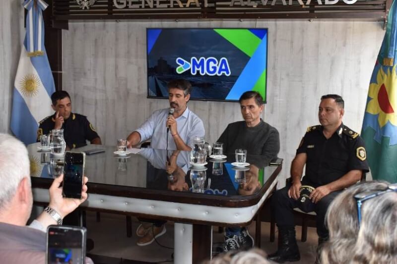 El Intendente Municipal de General Alvarado, Sebastián Ianantuony, realizó el pasado viernes 28 una conferencia de prensa en la Sala de Audiencias del Palacio Municipal, acompañado por el Secretario de Seguridad MGA, Paulo Rodríguez; del Crio. Inspector Diego Gancedo, y el Superintendente Juan Olmos, para hablar a la comunidad sobre la Seguridad y las acciones que se están desarrollando en estos momentos.