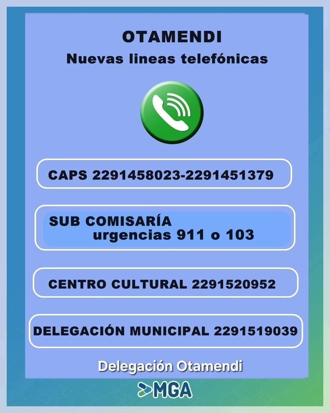 ✔️ Sub comisaria Otamendi: Urgencias 911 o 103.