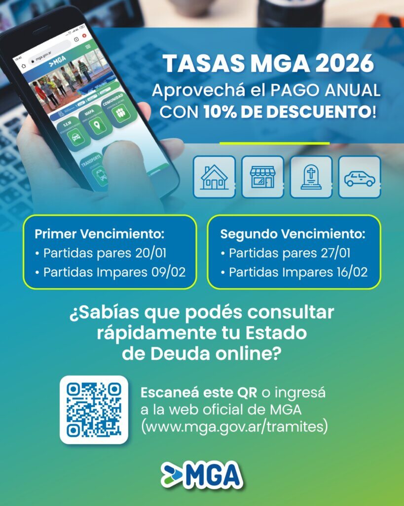 Tasas MGA 2026: Aprovecha el PAGO ANUAL CON DESCUENTO!