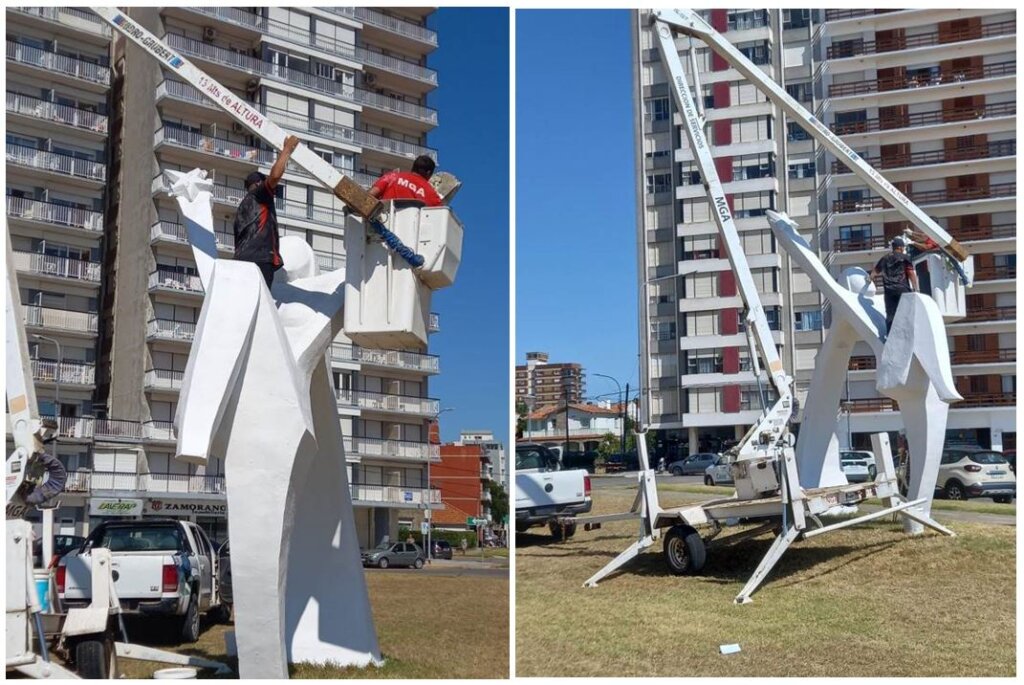 La Secretaría de Planificación, Obras y Servicios del Municipio de General Alvarado está llevando adelante estas obras de mantenimiento de esculturas y monumentos en espacios públicos de la ciudad de Miramar.