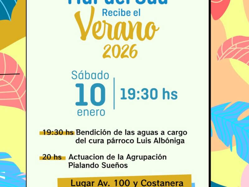 Parte N° 005 Dirección de Comunicación Social “Mar del Sud recibe el Verano 2026” Este sábado 10 de Enero, desde las 19:30 hs, te invitamos…