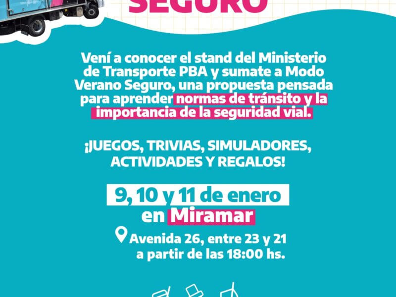 Parte N° 004 Dirección de Comunicación Social ☀️🚦 Modo Verano Seguro llega a Miramar Vení a conocer el stand del Ministerio de Transporte PBA y…